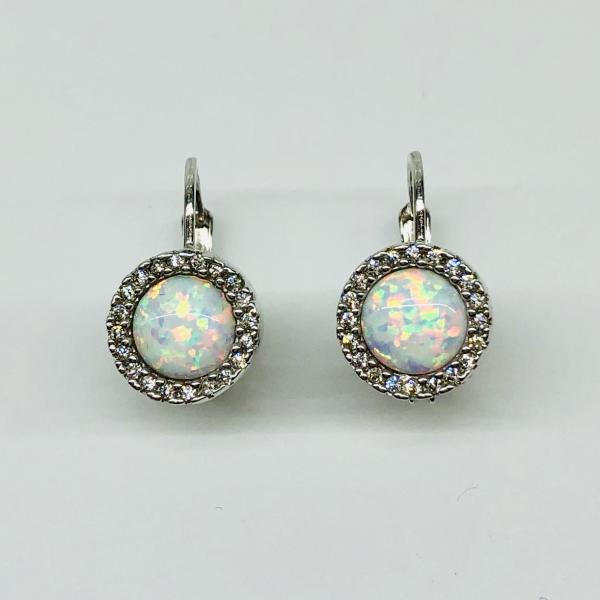 14 karátos fehér arany cirkónia köves fülbevaló szintetikus opállal. A fülbevaló súlya 2,6gr.