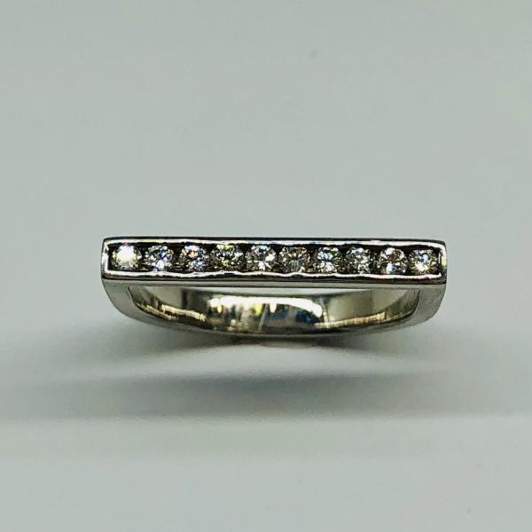 14 karátos fehér arany brill gyűrű. Tisztasága és színe a nemzetközi besorolás szerint: vs,h, nagysága 0,20ct.
