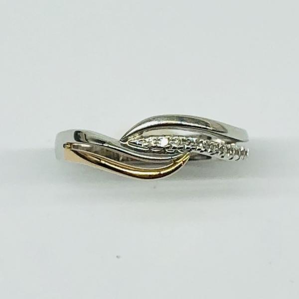 14 karátos vörös és fehér arany brill gyűrű. Tisztasága és színe a nemzetközi besorolás szerint: vs,g, nagysága 0,06ct.