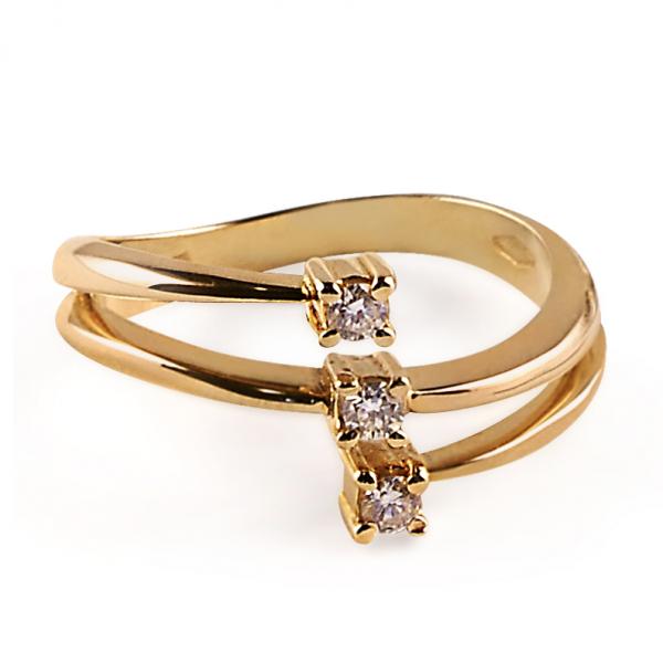 14 karátos sárga arany brill gyűrű. Tisztasága és színe a nemzetközi besorolás szerint: vs,g, nagysága 0,15ct.