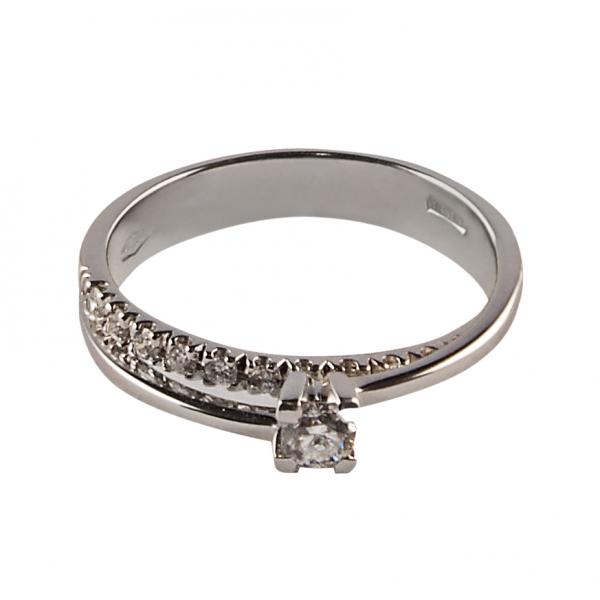 14 karátos fehér arany brill gyűrű. Tisztasága és színe a nemzetközi besorolás szerint: vs,g, nagysága 0,1ct és 0,19ct.