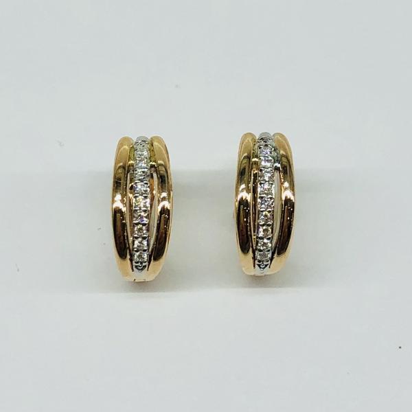 14 karátos vörös arany brill fülbevaló. Tisztasága és színe a nemzetközi besorolás szerint: vs,g, nagysága 0,10ct.